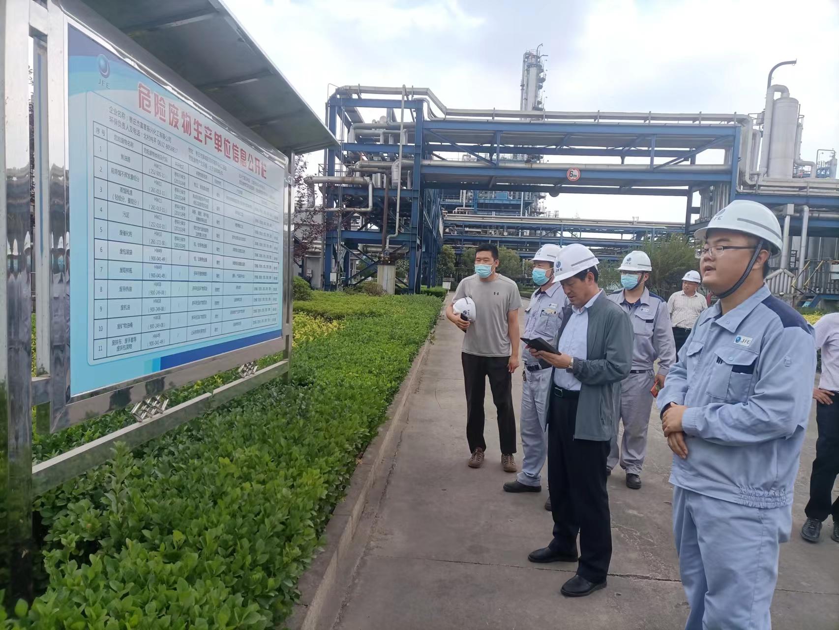 6月22日上午,山東省固廢和?;肺鄯乐?心副主任呂瑞學(xué)帶領(lǐng)省生 態(tài)環(huán)境廳危險(xiǎn)廢物幫扶組一行到棗莊杰富意公司檢查指導(dǎo)危險(xiǎn)廢物管理工作。棗莊市生 態(tài)環(huán)境局固廢土壤科科長高虎、市生 態(tài)環(huán)境局薛城分局副局長郭濤,公司安 全總監(jiān)楊建杰等陪同。